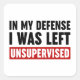 In My Defence I Was Left Unsupervised Black & White Quote Saying Funny Typography