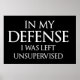 In My Defense I Was Left Unsupervised Funny Poster