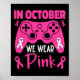 In October We Wear Pink Breast Cancer Gaming Kids Poster