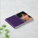 A funeral memorial tribute book. A simple in our hearts forever typographic heart script logo design in silver foil on purple add your own photo, name and dates. Original design by www.mylittleeden.com