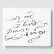 Memorial service guest book in white with black text. In our hearts forever & always is written across the cover in a swirly calligraphy script. The funeral guest book features a photo template on the back where you can add your own photo of your loved one. Personalise by writing their name on the spine.