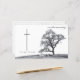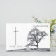 This memorial card has a dark modern and elegant design with a white border around the front and back. In silent mourning - tree on a meadow.
