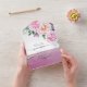 Elegant All- in- One tri- fold quinceañera invitation with perforated RSVP postcard. Design with delicate fuchsia watercolor floral cascading down encasing your wedding details in a beautiful blend of fuchsia, hot pink, purple and peach blush hues. Modern hand written calligraphy elements. Environmentally friendly, as there is no need for extra RSVP cards or even envelopes, this invitation has it all! Ability to add both Quinceañera Mass Ceremony and Reception details, or for events with no mass, it can be change to hold "Reception" and "Dance" details. Beautiful fuchsia hot pink watercolor wash perforated RSVP postcard ready for guests to fill in and mail! Option to order invitations with printed (or hand write later) guest name on the back so you can mail card with no need of any envelope, - OR - if you prefer to use an envelope, simply erase guest name and address characters from text boxes to remove, or add a quote instead. Attractive design for the elegant, yet practical and eco-friendly quinceañera! Part of our "Purple and Pink Joyful Floral" collection with a variety of coordinating products available, including mailing accessories and event products.