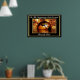 This christian vintage Genesis 1 In the beginning God created. With a black and gold frame poster. Has a Colorful vibrant Christian fire space design. With beautiful flames burning around the earth as it is being made. Looking like space clouds.The Bible verse Genesis.1 In the Beginning God Created.