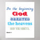Affirm your belief in creation. The Old Testament bible scripture text of Genesis 1:1 "In the beginning God created the heavens and the earth" in bold and colourful red, blue and green lettering on a plain white background, giving it a beautiful clean, simple and elegant look.