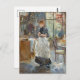 In the Dining Room (1886) by Berthe Morisot beautifully captures the everyday domestic scene of a woman in the intimacy of a dining room setting. Morisot’s signature Impressionist style is evident in the soft brushstrokes, capturing the delicate interplay of light and shadow across the room. The painting portrays a moment of quiet elegance, showcasing the simplicity and beauty of interior life. Morisot's ability to create a sense of warmth and comfort is evident, as she delicately conveys the subject's graceful presence amidst a cosy, yet refined environment.