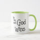 Cute cartoon frog on a lily pad with the uplifting message, "In the end...God Wins" is a great way to brighten anyone's day! In a world where so much negativity surrounds us on a daily basis, it can really help to keep your priorities in front of you. Colour of handle and inside can be changed to several different dynamic colours.
