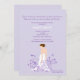 This delicate design features a soft lavender background with a pensive bride walking through a whimsical garden of flowers and butterflies. Her lovely white dress is flowing around her.
