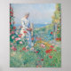 In the Garden (Celia Thaxter in Her Garden) (1892) | Original artwork by American Impressionist painter Childe Hassam (1859-1935). The piece depicts a woman standing in a beautiful lush green garden with pink and red flowers.