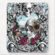 In the mirror landscape floral skull with butterflies on blue grunge damask base.
