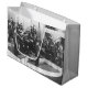 Large grey glossy gift bag with an image of a Big Band on the front, and the title of one of Glenn Miller’s greatest tunes, "In the Mood," on red music bars on the back. Also available in matte finish. See the entire Patriotic 40s Gift Bag collection in the PARTY FAVORS section.