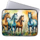 This image shows a herd of colorful horses in the pasture, blending whimsical drawing and abstract art elements in a palette of complementary colors.