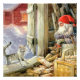 Jenny Nystrom created the image of the tomten or mischievous spirits and gnomes who protected the Swedish farmstead and buildings. They also represented Father Christmas who delivered children’s presents on Christmas eve.This image depicts a tomten in the woodshed with the family cat.