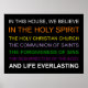 In this house, we believe in the holy spirit, the holy Christian church, the communion of saints, the forgiveness of sins, the resurrection of the body, and life everlasting. Live your faith loudly.