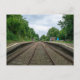 This striking photograph captures the quiet, timeless feel of Ince and Elton Railway Station in Cheshire, England. Shot from a unique, low perspective between the tracks, the image draws you in, following the two sets of rails as they converge toward the distant bridge. Flanked by lush, green trees and foliage, the platforms stand ready for a train that is just out of frame. This picture is a perfect piece for anyone who loves trains, classic British scenery, or a touch of urban landscape photography. This image can be edited and transferred to multiple products of your choosing.