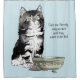 A cute maine coon tabby kitten in a backdrop of blue is wanting to be fed but is fiercely independant