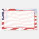 A patriotic illustration of the American flag waving the stars and stripes.    A red, white, and blue for design Independence Day (4th of July).  The jumbo sticky notes are a fun idea for the year-round as party favours at patriotic celebrations.