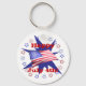 Keychain with my red, white and blue design of the American Flag surrounded by stars. Text says "Happy July 4th".