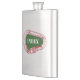 The product is a good size and came exactly as it was pictured. The lid is not attached to the flask, which could be dangerous on drunken nights... The print came out surprisingly well and looks very sharp. Would definitely recommend.
