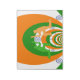 The artwork features an abstract, layered design incorporating the colours of the Indian flag: saffron (orange), white, and green. These colours are arranged in swirling, concentric patterns, creating a sense of movement and energy. Silhouettes of two cricketers in batting stances are positioned within the design, one rendered in green and the other in saffron. Several Ashoka Chakras, the blue wheel from the centre of the Indian flag, are integrated into the white bands of the design, adding a nationalistic element. The overall effect is a dynamic and symbolic representation of Indian cricket.