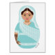 This card features my Indian (Aqua) matryoshka (aka- babushka, nesting doll, Russian doll, stacking doll), an original drawing by me, Amy Perrotti. My matryoshka drawings celebrate women and girls of all ethnicities and nationalities. This is a new version (older version did not show hand).