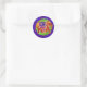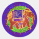 Brightly coloured Indian elephant with green, purple and blue bursts of colour. Paisley background. Pretty envelope seals for your Indian themed event.