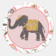 Indian Elephant Pink Yellow Flower Pattern Classic Round Sticker