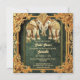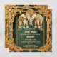 A square decorative border adorned with floral wedding flourishes and swirls frames a dark forest green brocade background on which light golden coloured templates appear for your custom wording. Above the wording are two regal ivory and faux gold Indian elephants standing side on to each other with their foreheads touching. The back of the invitation has the same design with additional templates for more information for family members and friends. If you would prefer to delete any details, simply remove the wording in the template to leave it blank. This stylish, elegant and traditional design is ideal for any Mendi bridal shower or for any Hindu or Hindi celebration. Spoil the bride to be with this ethnic asian upmarket, luxurious and bespoke square invitation