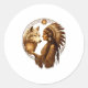 Indian Native American Woman With White Wolf Vinta Classic Round Sticker