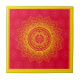Beautiful Indian round lace ornament design in yellow frame on red background