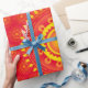 Indian lace ornament design with elephant and round shapes decoration on red background