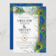 Rich royal blue background and side stripe mixes and matches with the other colours in this set for a beautiful and unique presentation. These peacock feathers were hand painted by artist Audrey Jeanne Roberts for an elegant, sophisticated upscale design. In oil pastels that beautifully capture the iridescent look of the peacock feather as light shines across it. They Art Deco style typography with simple and striking vintage fonts in a modern style will make your occasion stand apart. A simple gold glitter circle highlights the day of your wedding along with a striped band to the right. The background colour of the colour stripe and the back side can be changed to any colour you would like. Simply select "Customise it" and then look for "Printed background colour." Copyright Audrey Jeanne Roberts, all rights reserved.