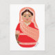 This postcard features my Indian (Red) matryoshka (aka- babushka, nesting doll, Russian doll, stacking doll), an original drawing by me, Amy Perrotti. My matryoshka drawings celebrate women and girls of all ethnicities and nationalities. This is a new version (older version did not show hand).