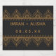 Classic indian wedding wine label template featuring anelegant gold mehndi design on the front, and a customisable message at the back. You can personalise it with the customise it button.
