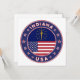 Badge of Indiana with flag of Indiana and flag of USA colours, rounded shape.