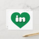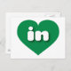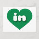 This postcard features a vibrant green heart containing the bold, white, rounded lower case letters in, a playful abbreviation for Indiana, the hoosier state. The reverse side of the postcard is blank, awaiting your handwritten sentiments or customised text.