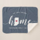 Show some home state pride with this cute rustic blue throw blanket featuring "home" in white calligraphy script lettering with a silhouette map of the state of Indiana standing in for the letter "O." A red heart illustration inside the state map completes the design; you can change the position of the heart to your home city by opening the design tool and dragging the heart shape to your favourite spot. Personalise with your home city, family name and year established to create a perfect and memorable housewarming gift or addition to your new home.