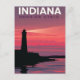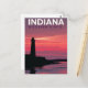 Transport yourself to the Hoosier State with this stunning, vintage-style travel postcard. Featuring a dramatic silhouette of a lighthouse against a vibrant, layered sunset (or sunrise) sky of fiery reds, deep oranges, and rich purples, this design is a beautiful piece of art. The reflection on the water and the bold "INDIANA HOOSIER STATE" text make this a perfect keepsake, wall art for a gallery, or a unique card to send to a friend. Ideal for Indiana natives, travel lovers, lighthouse enthusiasts, and anyone who appreciates beautiful, retro design.