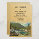 A unique vintage Indiana wedding invitation in mid-century style featuring a beautiful nature scene with forest trees, snow and a stream river or brook flowing by a small mountain. Celebrate your Indiana destination wedding with this charming Indiana wedding invite. Perfect for camping weddings and outdoor ceremonies.