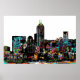 The city of Indianapolis, Indiana covered in graffiti featuring iconic architecture found in the city.