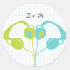 Indie Headphone Heart Blue / Lime Green Wedding Classic Round Sticker