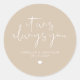 This sticker features an edgy handwritten font and modern minimalist design with the phrase, "It was always you" with a bohemian beige cream and white colour combination. Easily change the names and date on the sticker and edit the all colours by clicking 'click to customise further.'