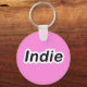 Indie isn’t just posing—she’s talking! The front features customizable speech bubbles, making this keychain truly unique. Add a name, a fun message, or an inside joke to make it one-of-a-kind. The back keeps it simple yet stylish with her name in bold, funky typography on a vibrant pink background.