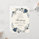 An elegant floral border frames this design with deep blue and soft cream blooms. The overall feel is sophisticated and romantic, perfect for a timeless occasion.