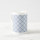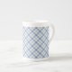 A pretty Bone China Coffee Mug, with an Indigo Blue and White diagonal Check Pattern. Part of the Posh and Painterly 'Indigo' collection. This pattern can easily be adjusted to fit any Mug.