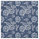 Elegant indigo blue and white floral fabric inspired by crewel embroidery and antique Indian floral designs.