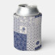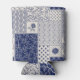 Indigo Blue Beige Floral Patchwork Can Cooler