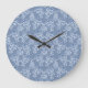 A chic Round Acrylic Wall Clock, with typically Indian-style floral print in Indigo Blue on washed out Denim Blue, outlined in White. Part of the Posh and Painterly 'Indigo' collection. This pattern can easily be adjusted to fit any Wall Clock.