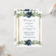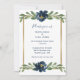 Indigo Blue Floral Elegant Gold Wedding Invitation