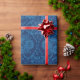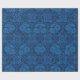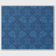 Indigo Blue Floral Faux Lace Pattern Wrapping Paper